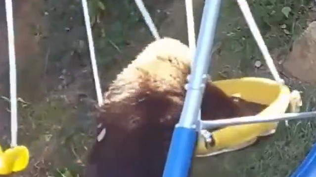 Bir adam, arka bahçesindeki salıncağı kullanan bir ayı fark etti. Bu beklenmedik anı kaydetmek isteyen adam, hemen bahçeye bir kamera kurmaya karar verdi.