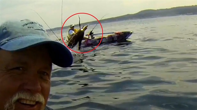 Selfie kamerasına yansıyan görüntüde bir deniz aslanı oltaya doğru böyle hamle yapıyor...