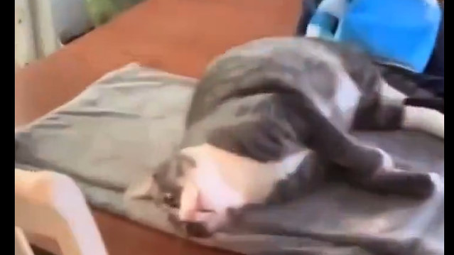 Kedinin adeta “Bu gürültüde nasıl yaşanır?” dercesine verdiği tepkiler, insanlarla kedilerin duygusal benzerliğini de ortaya koyuyor. Kafasını çevirip hüsranla etrafa bakması, patilerini çaresizce uzatması ve sonunda pes edip kendini masaya bırakması, izleyenlerde kahkahalara neden oldu.