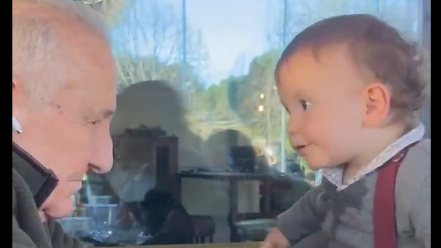 Bir dede ile torunu arasında yaşanan sevimli an, sosyal medyada kısa sürede gündem oldu. Görüntülerde, torununun kulaklığını almak için uzandığını sanan dede, bir anda şaşkın bir ifade takınıyor. Ancak küçük çocuğun aslında sadece ona sarılmak istediği anlaşıldığında, sahne bir anda duygusal bir hâl alıyor. Dedenin yüzündeki şaşkınlık yerini gülümsemeye, torununun sıcak dokunuşu ise kalplere dokunan bir sevgi anına bırakıyor.