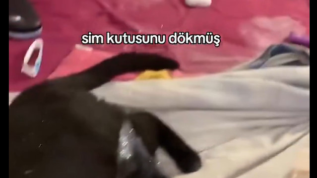 Bir kedi, sahibinin eşyalarını kurcalarken sim kutusunu devirdi ve ortaya tam anlamıyla parıl parıl bir manzara çıktı. Her yeri sime bulayan bu meraklı kedi, etrafı biraz karıştırmış olsa da parlayan tüyleriyle hem sahibinin hem de videoyu izleyen herkesin yüzünü gülümsetmeyi başardı. Özellikle siyah tüylerinin üzerinde duran simler, kediyi âdeta ışıl ışıl bir karaktere dönüştürdü. İzleyenler de bu tatlı kazanın yarattığı görüntü karşısında hem şaşırdı hem de eğlenceli yorumlar yapmadan duramadı.