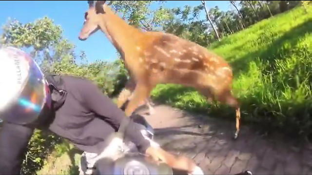 Bir motorcu, ceylanın yumruklu saldırısına uğradı