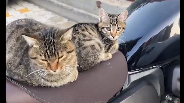 Motosiklet Selesinde Kurulan Sıcak Yuva Soğuk havalarda sıcak yer arayan sokak kedilerinin en çok tercih ettiği yerlerden biri motosiklet selesi. Bu anne kedi de uzun süredir aynı noktayı yuvası hâline getirmiş. Görüntüler, kedinin kendini güvende hissettiği bu küçük alanın aslında bir yıl boyunca nasıl bir aile hatırasına dönüştüğünü gösteriyor.