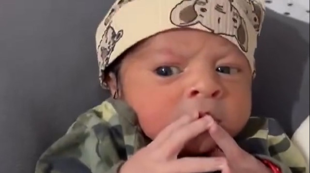 Henüz daha yeni doğmuş bir bebeğin elleri ile düşünme pozisyonu alıp, etrafında olan bitene dikkat kesilmiş hali izlerken bizleri de güldürdü.