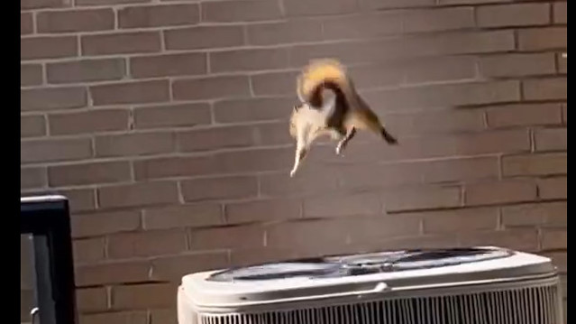 Bir klima ünitesinin üzerinde akrobatik hareketler yapan sincap, izleyenlere keyifli anlar yaşattı. Üniteden gelen hava akımının etkisiyle havada asılı kaldı. O anlarda adeta uçuyormuş gibi bir görüntü oluşturan sincap, hem çevresindekilerin hem de videoyu izleyenlerin ilgisini çekti.