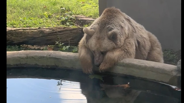 Darıca hayvanat bahçesinde yaşayan bir boz ayının, gölet kenarında çökmüş hâlde, adeta hayata küsmüş gibi oturduğu anlar ziyaretçilerin kamerasına yansıdı. Başını suya doğru eğip düşünceli bir hâle bürünen ayı, kısa sürede sosyal medyada “dertli ayı”, “hayatla hesaplaşan ayı” gibi esprili yorumlarla gündem oldu.