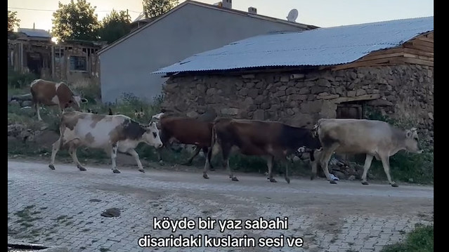 Köyde bir yaz sabahı, dışarıda öten kuşların sesiyle birlikte başlayan o sessiz huzuru tarif etmek kolay değil. Beton binaların, korna seslerinin arasında unutulan doğallığın bir karede toplanmış hali gibi… Görselde sabahın erken saatlerinde yola çıkan inekler, taş sokakların arasında ağır ağır ilerliyor. Havanın serinliği, güneşin yeni doğan ışığı ve çevreye yayılan o tanıdık “köy kokusu” ise sadece orada olanların anlayabileceği türden bir his bırakıyor.