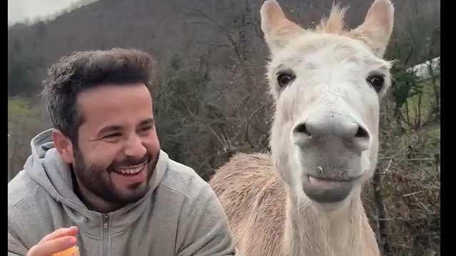 Bir adamın eşeğiyle birlikte meyve yemesi, izleyenlere hem eğlenceli hem de samimi anlar yaşattı. Adamın elindeki meyveden bir lokma alıp kalanını eşeğine uzatması, aralarında kurulan dostluğu ve paylaşma duygusunu en doğal haliyle gözler önüne serdi. Kameraya yansıyan bu anlar, izleyenlerin yüzünde tebessüm bırakarak gündelik hayatın ne kadar keyifli olabileceğini hatırlattı.