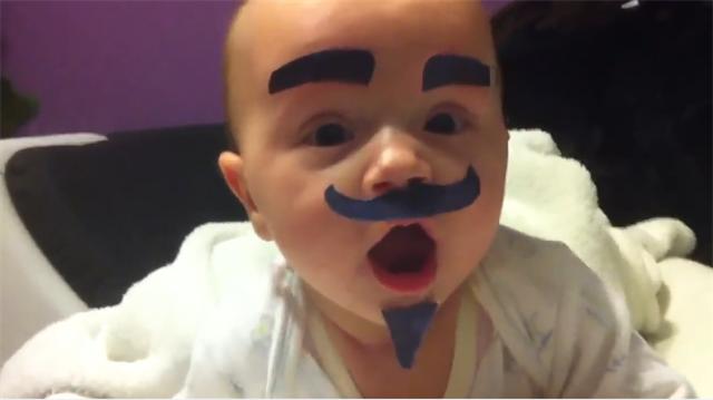 Eşi evde yokken bebeğine sakal, bıyık, kaş yapan baba