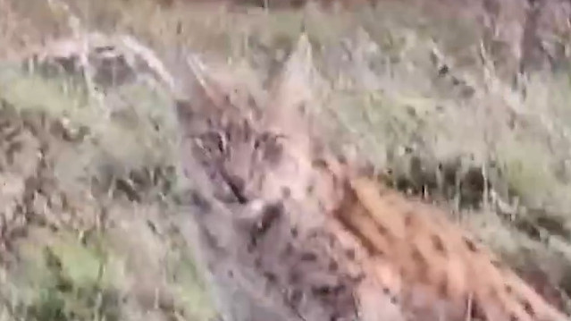 Karabük'te doğa yürüyüşü yapan bir grup vatandaş, nesli tehlike altında olan vaşağı görünce heyecan dolu anlar yaşadı. Ancak görüntüleri ilginç kılan detay, vatandaşların vahşi kediyi görünce refleksle “gel pisi pisi” diye seslenmeleri oldu.