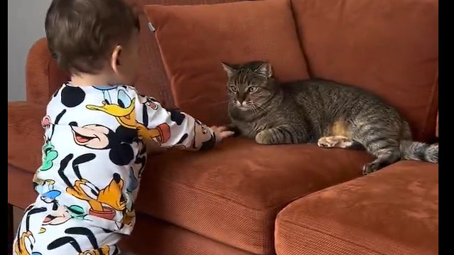 Sosyal medyada paylaşılan bir video, izleyenlerin hem gülümsemesine hem de şaşırmasına neden oldu. Görüntülerde, oyun oynamak isteyen bir bebek, yanındaki kediye heyecanla dokunmaya çalışıyor. Kedinin ilk başta sakin olan tavırları, bir anda değişiyor ve kedi refleksle minik bir pati savuruyor. Beklenmedik bu hareketin ardından bebeğin ağlamaya başlamasıyla ortalık kısa süreli bir karışıklığa dönüyor. Ancak asıl dikkat çeken detay, kedinin olaydan sonra yüzünde beliren şaşkın ifade oluyor.