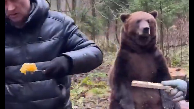 Kendisine insanlar tarafından bal ikram edilen ayının sevinci izlerken bizleri de gülümsetmedi değil. Annemiz sevdiğimiz yemeği yapınca biz de böyle oluyoruz.