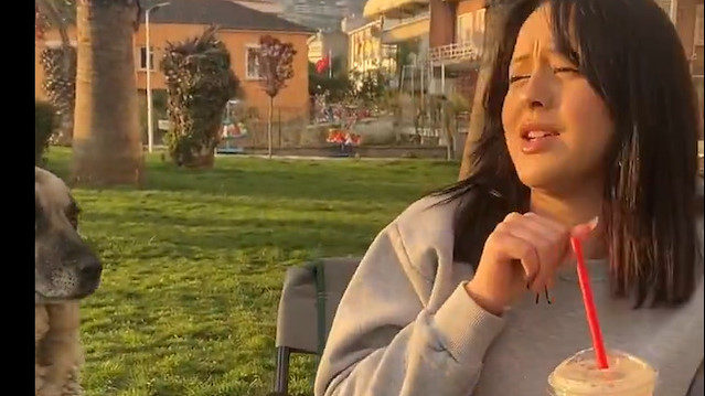 Arkadaşları ile birlikte bir parkın bahçesinde oturan kıza, oradan geçen bir köpek oldukça kibar bir dokunuş ile dikkatleri üzerine çekmeyi başarmış.