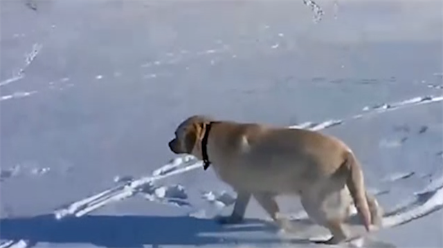 Rusya'da karlı bir dağın tepesinde kızak kullanmadan kayak yapan köpeğin sevimli anları böyle görüntülendi.