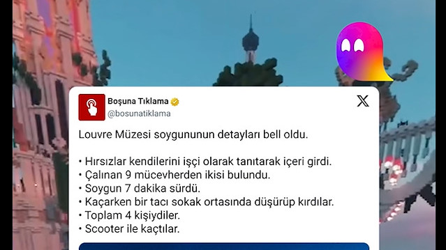 Paris'teki Louvre Müzesi'nde yaşanan soygun haberi, tüm dünyada olduğu gibi sosyal medyada da gündeme oturdu. Hırsızların işçi kılığında girip sadece 7 dakikada 9 mücevheri çalması, kullanıcılar arasında hem şaşkınlık hem kahkaha yarattı. “Scooter'la kaçtılar” detayıysa olayı neredeyse bir Fransız komedisine çevirdi. Bir kullanıcı “Bu eleman mı girdi?” diyerek ünlü dizi karakterlerine gönderme yaparken, bir diğeri müze güvenliğini mizahın merkezine taşıdı.