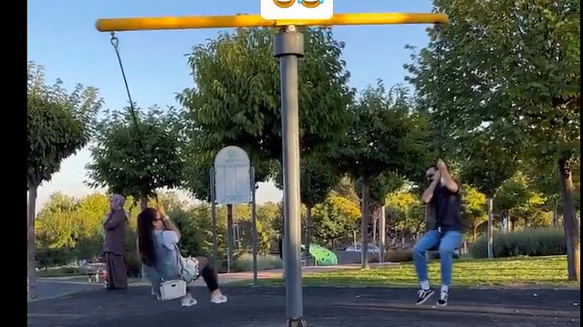 Parka oyun oynamaya getirilen ancak eğlenenin anne ve babası olduğunu fark eden çocuk
