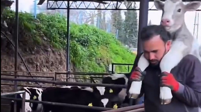 Ahırda bulunan ineklerini sırtında taşıyan bu adamın, taşıdığı ineğin güzelliğini gördükten sonra taşımasını mantıklı bulmadık değil.