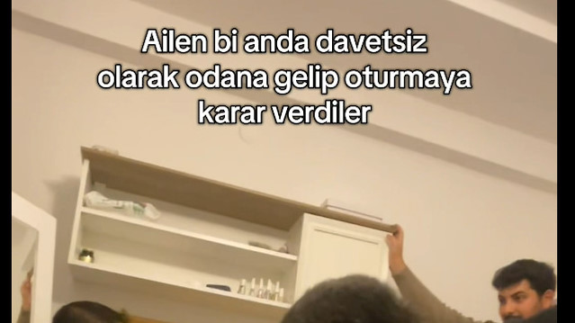 Kendi odasında sessizce zaman geçirirken bir anda kapının açılmasıyla içeri doluşan aile bireyleri… Bu sahne birçok kişinin tanıdığı o tanıdık anlardan biri. Davetsiz bir ziyaretin, özellikle de kendi alanında huzur arayan biri için ne kadar beklenmedik bir durum olduğunu anlatan bu görüntü, sosyal medyada da geniş yankı uyandırdı.