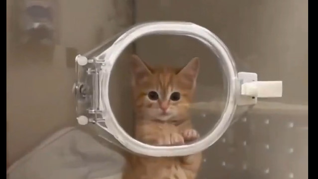 Bir veteriner kliniğinde sahibi tarafından teslim alınmayı bekleyen bir kedinin görüntüsü izlerken bizlerin de içini yumuşattı.