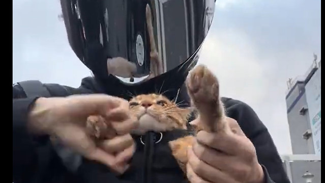 Sahibi ile birlikte yolculuk yapmak isteyen kedinin bu yolculuk anında çekilen videosu izlerken yüzümüzü gülümsetti.
