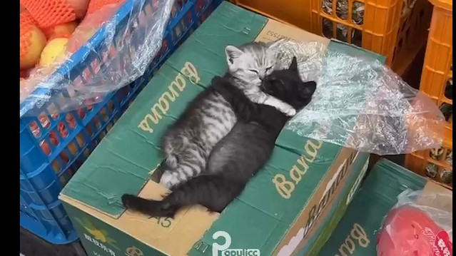 Sıcaktan bunalan kediler, marketin serinliğinde birbirine sarılarak uyuyakaldı. Kedilerin bu hallerini izlerken zihnimizde nasıl bir durum içerisinde bulunuyor olursak olalım her daim yanımızda bulunan arkadaşlarımızı bizlere anımsatmadı değil.