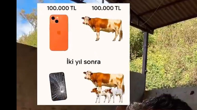Mizah ve Gerçekçilik Bir Arada Paylaşım, hem esprili yaklaşımıyla güldürdü hem de ekonomik gerçeklere dokundu. Bir yanda kısa sürede değer kaybedebilecek bir telefon, diğer yanda uzun vadede gelir getirecek bir yatırım olan gebe inek… Çiftin sorusu sosyal medyada geniş yankı uyandırırken, “mantıklı olan belli ama gönlümüz hangisini ister?” yorumlarını da beraberinde getirdi.
