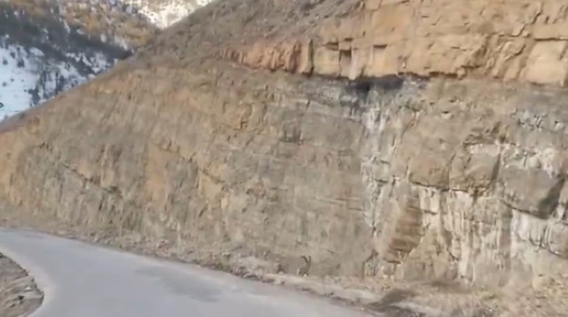 Yol kenarında karşılaştığı dağ keçisinin muazzam bir performansına şahit olan sürücünün kaydettiği görüntüler izlerken bizleri kendine hayran bıraktı.