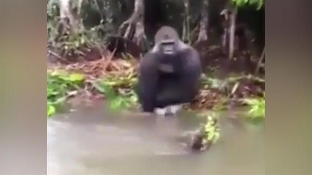 Küçük bir tekneden atılan taş gorili çileden çıkardı. Sinirlenen goril suya vurarak teknenin üzerindeki kişileri ısladı. Daha sonra goril oradan hızla uzaklaştı. O anlar teknede bulunan kişilerin kamerasına böyle yansıdı.