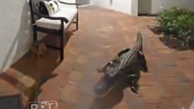 ABD'de kapıyı kimin çaldığına kameradan bakan bir kişi, iki timsahla karşılaştı.
