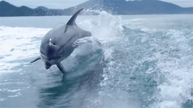 Tekne gezisi yapmakta olan bir film ekibi, teknenin arkasında onları takip eden yaklaşık 20 yunus balığı olduğunu fark edince bu büyüleyici şovu kameralara kaydetti.