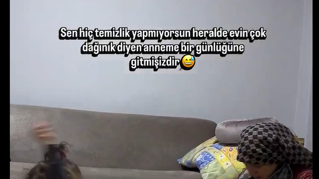 Aile içi sıcaklık her kaosun üstesinden geliyor Görüntüdeki küçük kavga aslında tam bir Anadolu sahnesi: hafif atışmalar, bol kahkaha, biraz yorgunluk ama çokça sevgi… Her şeye rağmen anneannenin yüzündeki sabır, torunun rahat tavrı ve evin o tanıdık sıcaklığı ekrana yansıyor. Birkaç dakika sonra kavganın yerini yine oyun, muhabbet ve sarılmaların alacağını hepimiz biliyoruz.