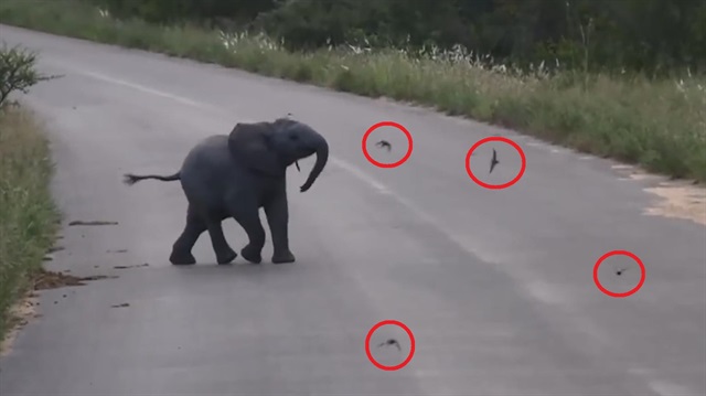 Ormanlık alanda asfalt yoldaki kuşalara sinirlenen yavru fil, elinden geldiğince onları kovalamaya çalıştı. O komik halleri ise çevredekilerin cep telefonu kamerasına böyle yansıdı.