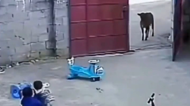 Evlerinin bahçesinde oynayan kardeşler açık olan bahçe kapısı önünde köpek görmeleri ile birlikte abinin kardeşlerini korumaya alması ve ardından sergiledikleri sevgi gösterileri içimizi yumuşattı.