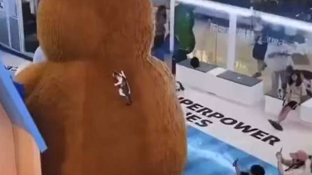 Kedilerin daha önce hiç olmamaları gereken yerlerde ve mekanlarda karşımıza çıkma huylarına alışkanlık ve bağışıklık kazandığımıza inanıyor olsak da daha önce AVM içerisinde bulunan devasa boyuttaki ayıcığın kafasında kendine yer edinen bir kediye denk gelmemiştik.
