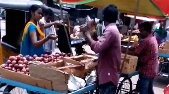 Sokak satıcısı, elma seçen kadının aldığı elmaları hızlı hareketle kendi paketlediği elmalarla değiştirmesi görenleri şok etti.