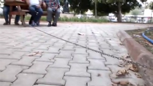 Mersin Silifke'de bir grup esnaf, belediye tarafından parka konulan bankı çalınmaması için ağaca zincirledi.