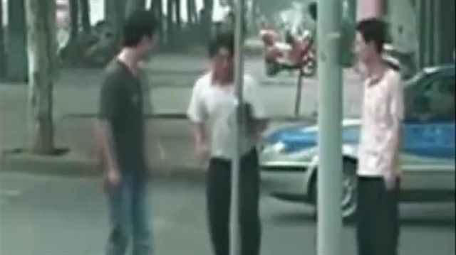 Üç arkadaş yolda gidiyorlar, biri demir direğe çarpıyor. Direğe çarpan bir anlık öfkeyle direğe saldırıyor durumu anlamadıkları belli olan arkadaşları da onu yalnız bırakmıyor. Direğe tekme tokat giriyorlar.