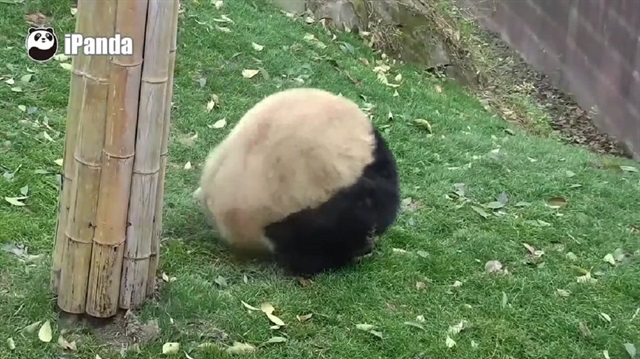 Sevimli panda takla atıyor.