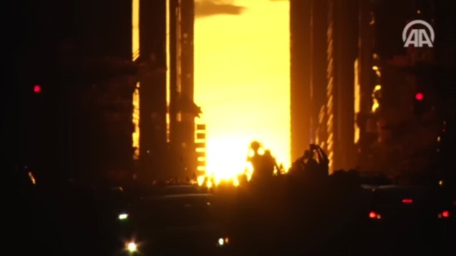 Yılda sadece dört kere meydana gelen ve "Manhattanhenge" olarak adlandırılan güneşin 42. caddedeki binaların arasından batışına New Yorklular yoğun ilgi gösterdi.