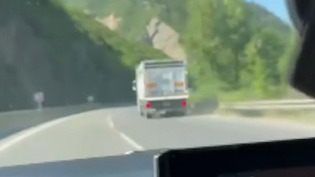 Sakarya'nın Geyve ilçesi D-650 kara yolunda bir otomobil sürücüsü 120 kilometre hızla gitmesine rağmen önündeki tıra yetişemedi. Hız limitini aşan tırın tehlikeli yolculuğu, 'Sonra niye bu yolda kaza oluyor' sözleri ile kaydetti.