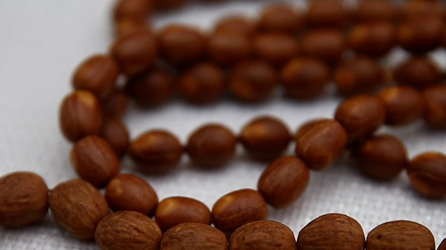35 yıldır andız kozalaklarının çekirdekleriyle tespihler tasarlıyor