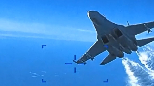 Amerika Birleşik Devletleri Avrupa Komutanlığı (EUCOM), Karadeniz'de düşen MQ-9 tipi İHA'nın Rus savaş uçağı Su-27 tarafından düşürüldüğü anlara ait görüntüleri yayınladı.