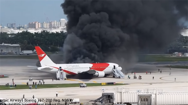 Hollywood havalimanında yanan uçaktan yolcular tahliye ediliyor.