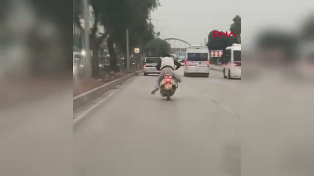 Seyhan ilçesi Turhan Cemal Beriker Bulvarı'nda ilerleyen 01 AUZ 495 plakalı motosikletin sürücüsü, tehlikeli hareketler yaptı. Önce motosikletin üzerinde ayağa kalkan sürücü, ardından da aracın üzerine uzanarak yolculuk etti. Tehlikeli yolculuk başka bir sürücü tarafından cep telefonuyla görüntülendi. Polis, sürücünün kimliğinin belirlenmesi için çalışma başlattı