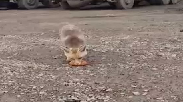 İlçede bir yabani tilki, inşaat şantiyesine girip dolaşmaya başladı. Şantiyede çalışan işçilerden biri, tilkinin karlı havada yiyecek bulmakta zorlandığını düşünerek mutfaktan ekmek çıkardı. İşçi, yanına yaklaşan tilkiyi ekmekle besledi. Tilkiye 'Gel kızım' diye seslenen işçi, bu anları cep telefonuyla görüntüledi.