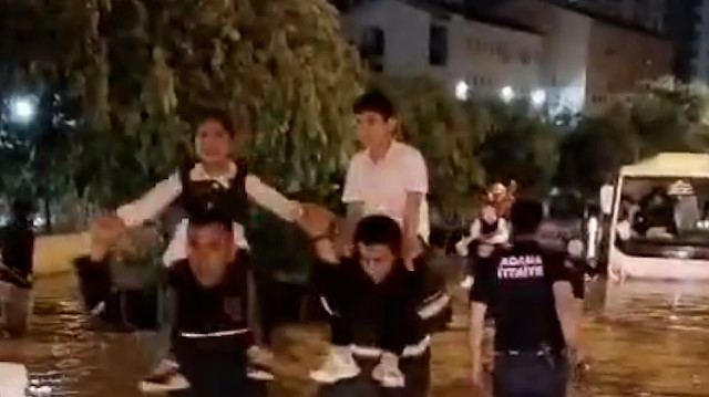 Merkez Çukurova ilçesine bağlı Huzurevleri Mahallesinde gece başlayan ve şiddetini artıran yağmur hayatı olumsuz etkiledi. Kısa sürede yollar göle döndü. Bu nedenle bir çok araçta yolda su içinde ilerleyemedi. 23 Nisan etkinliğinden dönen ve çocukları taşıyan bir serviste göle dönen yolda kaldı. Bunun üzerine servistekiler 112'yi arayarak haber verdi. Olay yerine itfaiye ekipleri geldi. Servisin olduğu yere ulaşan ekipleri çocukları tek tek omuzlarına alıp suyun olmadığı yere çıkartıp kurtardı. Bu anlar ise saniye saniye görüntülendi.