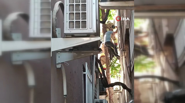 Hatay'da ağaçtan düşerek asılı kalan şahsı itfaiye ekipleri kurtardı.