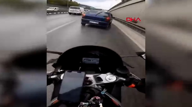 Aniden şerit değiştiren otomobille motosiklet böyle çarpıştı
