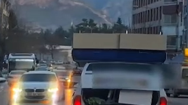 Şeyhcui Mahallesi Türkistan Caddesi Milli Hakimiyet Parkı yakınlarında, otomobilinin tavanında çift kişilik baza ve yatak taşıyan sürücü, tehlikeye aldırış etmeden trafikte ilerledi. O anlar cep telefonuna başka bir sürücü tarafından kaydedildi. Otomobil bir süre ilerledikten sonra gözden kayboldu.