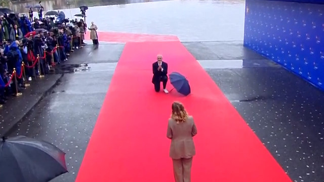 Arnavutluk Başbakanı Edi Rama'nın, İtalya Başbakanı Giorgia Meloni'yi kırmızı halıda diz çökerek karşılaması ise gülüşmelere neden oldu.
